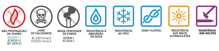 •          Temperatura máxima no condutor: 90 ºC (120 ºC durante 20 000 h)